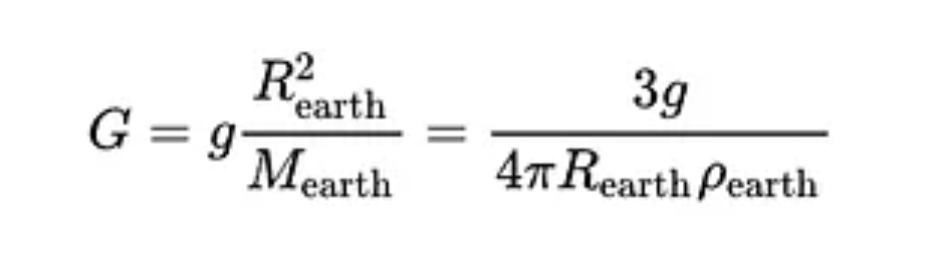 এখানে G মহাকর্ষীয় ধ্রুবক, Rearth পৃথিবীর ব্যাস, g মহাকর্ষীয় ত্বরণ বা আকর্ষণ, ρearth পৃথিবীর ঘনত্ব। (কেউ হয়তো জিজ্ঞাসা করতেই পারেন, পৃথিবীর ব্যাস কীভাবে মাপা হলো? সে জন্য এই লেখাটি পড়তে পারেন।’